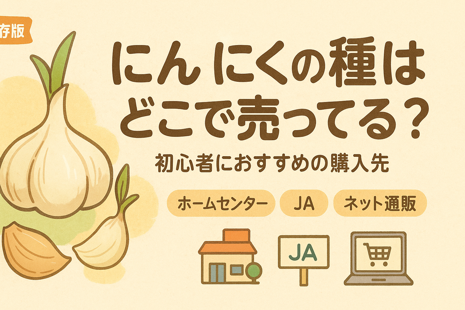 「にんにくの種って、結局どこで買えばいいの?」——そんな迷いを、この記事で丸ごと解消します。ホームセンター・種苗店(JA)・ネット通販の“買える場所”を比較しつつ、並び始める販売時期と植え付けの適期をわかりやすく整理。 さらに、初心者でも失...