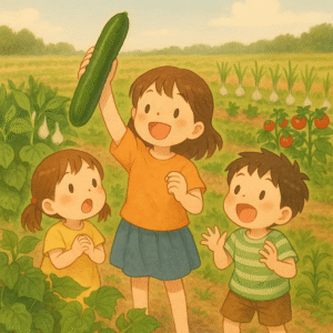子どもたちの“丸かじり”も、巨大ズッキーニ風きゅうりも、全部ひっくるめて最高の夏でした。