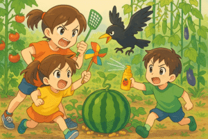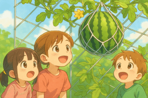 - 子どもたちが「ぶらさがってるスイカ」を見て大興奮!笑