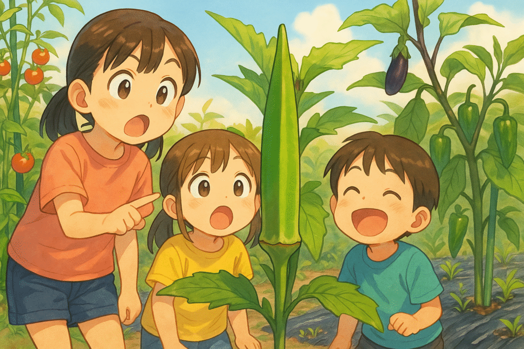 こんにちは!オクラが収穫できるまで成長しました👏 子どもたちも大好きなオクラ。でも、オクラは収穫して終わりではありません!今日は収穫後にやっておくと**株が長く元気に育つ「下葉取り」**について紹介します。 オクラの収穫タイミングは? オクラは... -